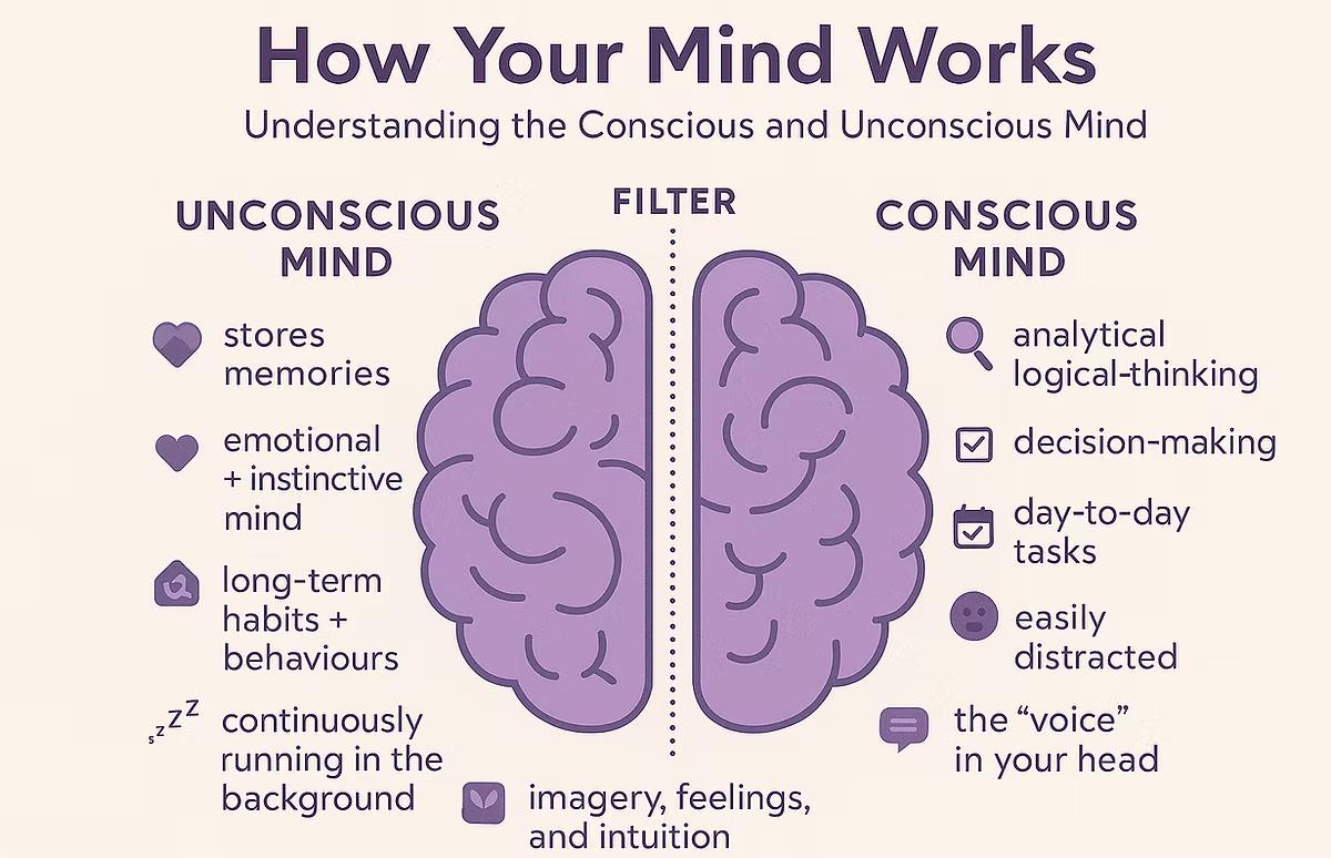 This stores your emotions, memories, and learned behaviours. It operates automatically and isn't directly accessible to your conscious mind. The power of hypnosis lies in its ability to access and influence the unconscious mind.